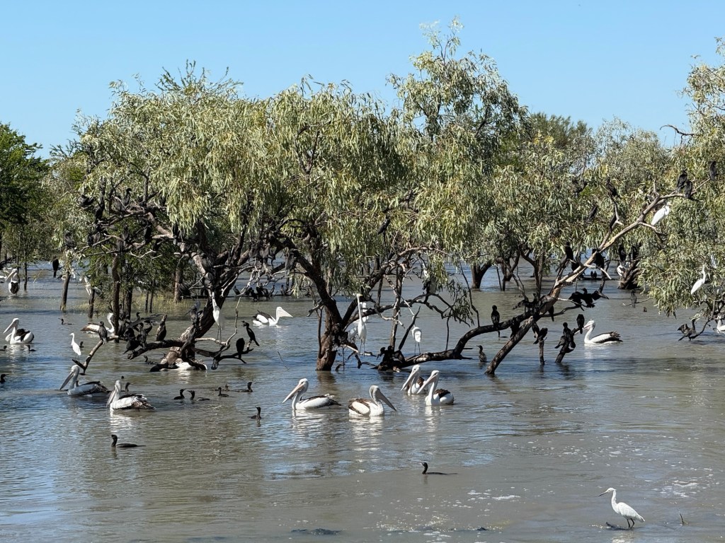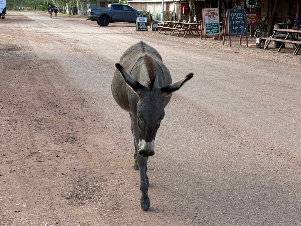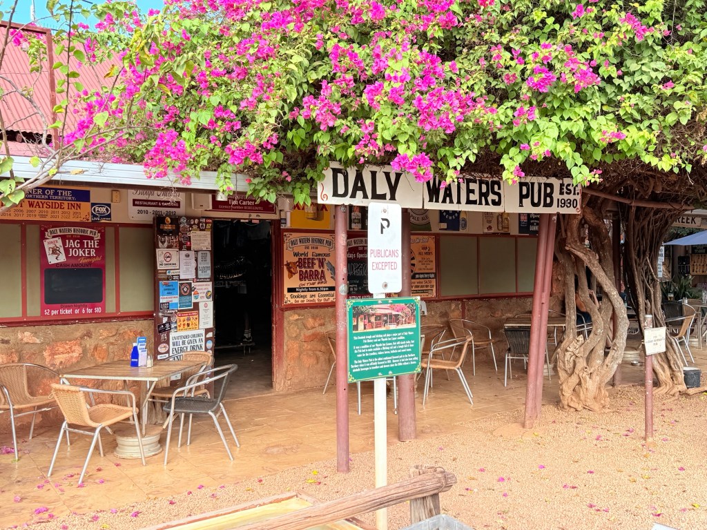 Moving on from BB the trip up the Stuart to the Daly Waters Pub was uneventful compared to the previous days tyre blow out. We stopped for a while at Newcastle Waters, a bit of a ghost town after being a drovers meeting point in the 1800 and early 1900s. The ‘waters’ were brimful and teeming with bird life, pelicans, cormorants, herons, ducks and others.