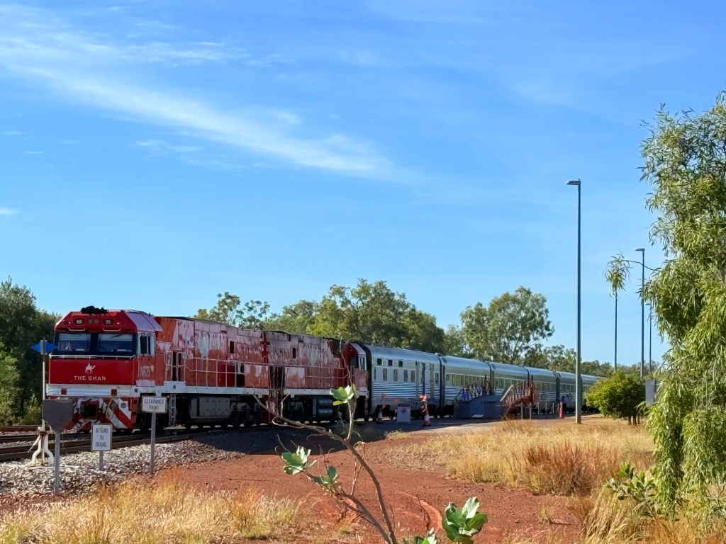 Travelling southwest from Katherine along the Victoria Hwy to Kununurra is one of Australia’s great road journeys. It traverses the flood plain of WA longest river, at least single name river ‘Victoria’. It is some 350 km long from its source somewhere behind the town of Timber Creek to the Bonaparte Gulf (just within the NT border). Outside Katherine the Ghan was making its way north to Darwin, couldn’t resist a picture stop.