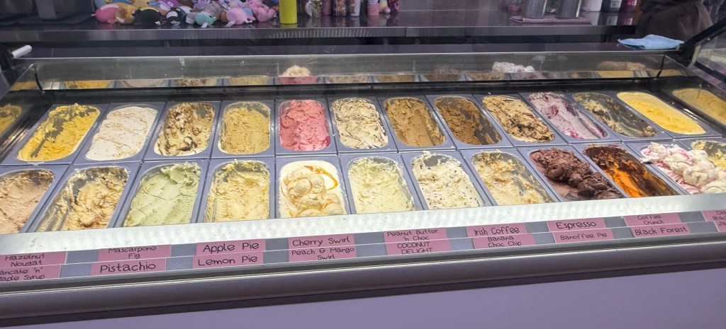 Some ice cream followed at the towns famous ice creamery. Vast array of ice cream and sorbets.