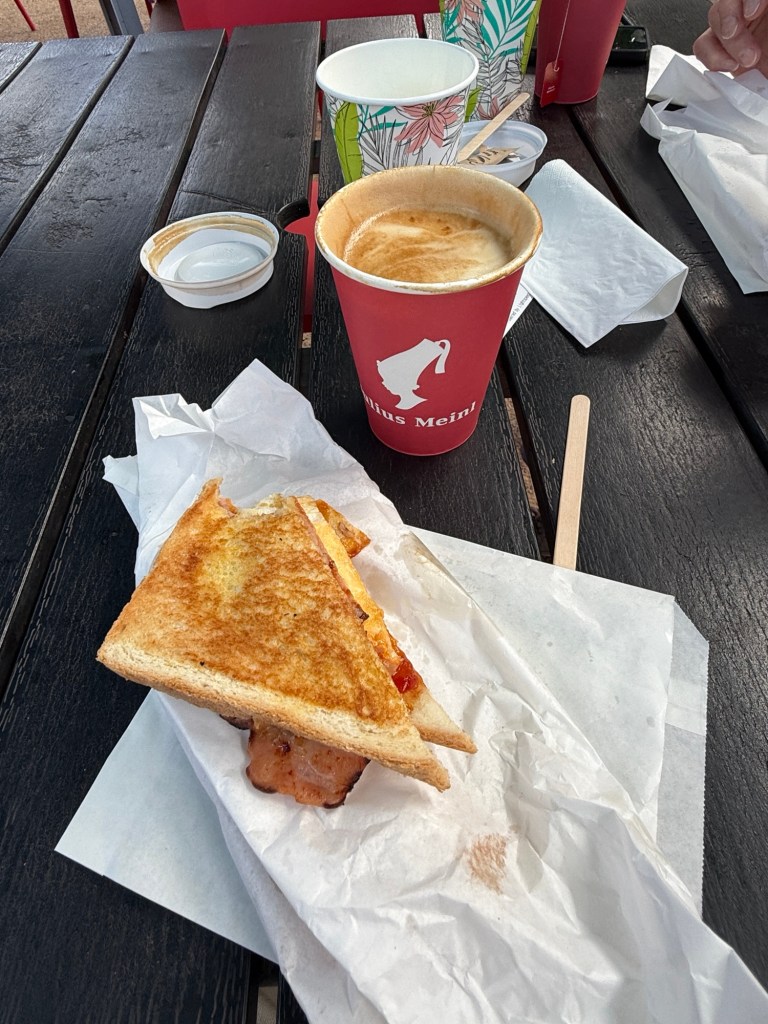 Back at the van park we got set for an early start the next morning but we got caught at the van park cafe for a coffee (tea) and toastee for breakfast.
