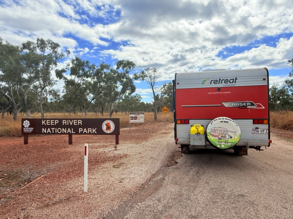 We now leave Kununurra and backtrack just over the border into the NT, where Keep River NP is located (bottom left on the map). We have technically lost that hour and a half we gained the other day. We have decided though to keep our watches on WA time, so as not to confuse the sun. Phones automatically switched to NT time.
