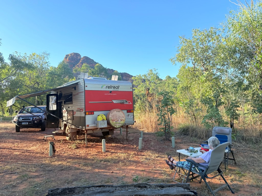 We are here to do some walking and see some rocks. It is claimed the park is the NT best kept secret. It is considered to be a mini Bungle Bungles. We shall see over the next couple of days.