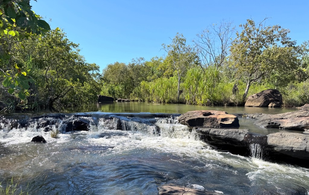 On the others side of the waterhole is the track that leads to Manning Falls, one of the icons of the Gibb. You have to swim across the waterhole with your walking gear in a tub. Then a 5km return walk to the Falls. The first 80% of the walk is fairly easy.
