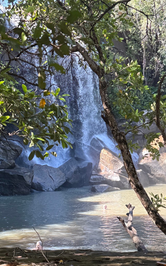At the bottom the view of the water coming over the top into the pool is special. The swim is refreshing. There are no salty crocs in here, maybe freshies but none were seen.