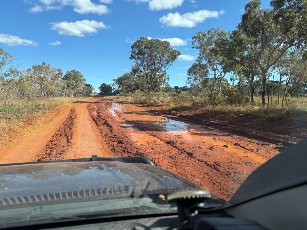 But onwards to Mt E. The road deteriorated somewhat from here on with a number of shallow creek or drainage crossings. Also, a few deeper corrugations and muddy wet patches that were drying out. Some wheel ruts in the drying mud showed just how much water had been on the road. Still rate it though at about 80%.