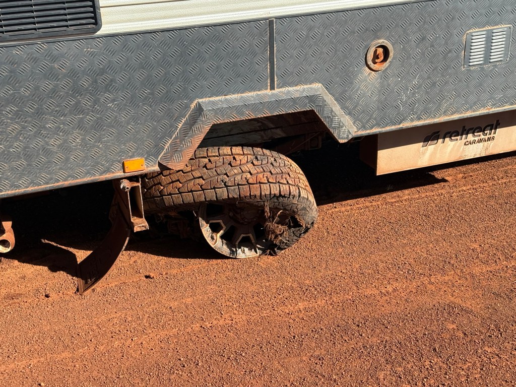 To cut a long story short all was made good, thankfully we have two jacks which allowed us to get the spare on ok. Took a while though including cleaning the tyre remnants and steel wires off the hub. The parking and electric brake cables were undamaged.