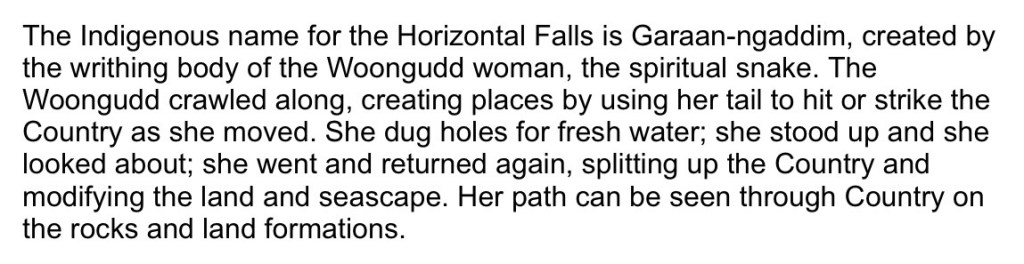The local indigenous people maintain these ‘inland seas’ are culturally significant and very important to their beliefs. They have native title over the area and allow boats to pass through the first horizontal fall but not the second. The second one would be rather problematical anyway, rather tricky and dangerous.