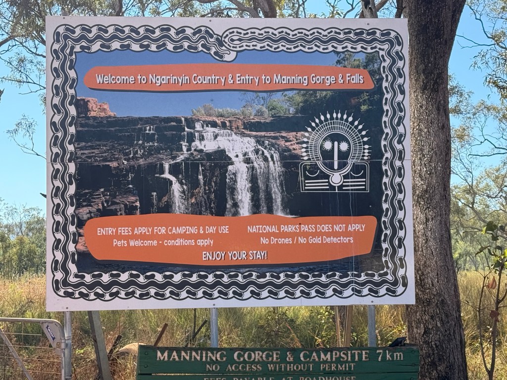 The 7km track down to the Manning Gorge campground starts alongside the Roadhouse. It was generally an easy drive along a well graded track for the first couple of kms, after that it got a bit rocky in places and there were a couple of low level water crossings. But all good! This was our base for four nights.