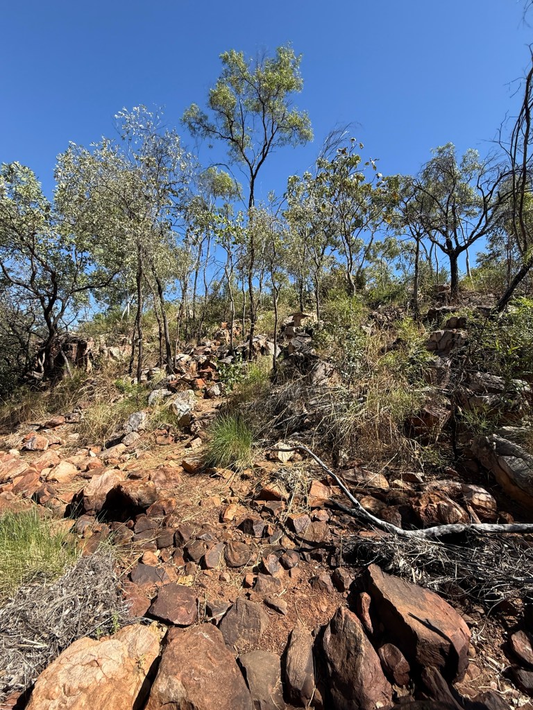 Behind the hill in the photo is a current day traditional burial area, not accessible without consent.