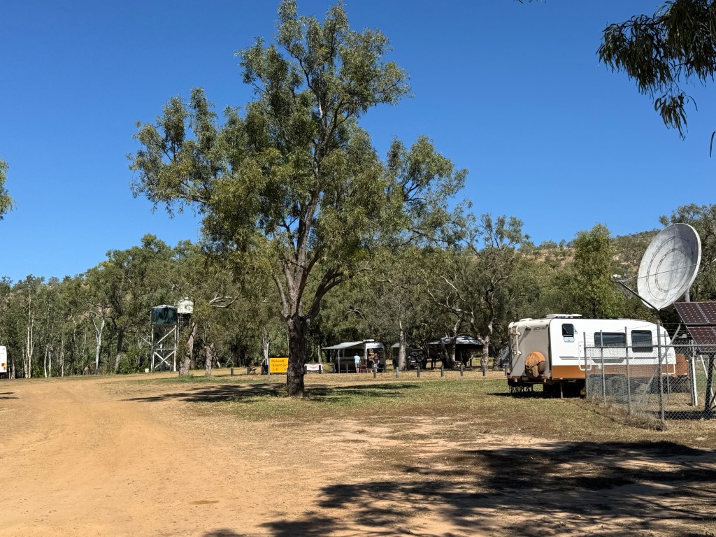 Mt E is a 500,000 acre 6,000 head working cattle station, with the tourism add on. Very big lightly wooded campground, no power or water to sites but great facilities. Recently added a new amenities block and unexpectedly they have a couple of washing machines and also sell diesel, $2.95 litre. Good spot to stay for a few nights.
