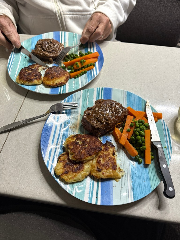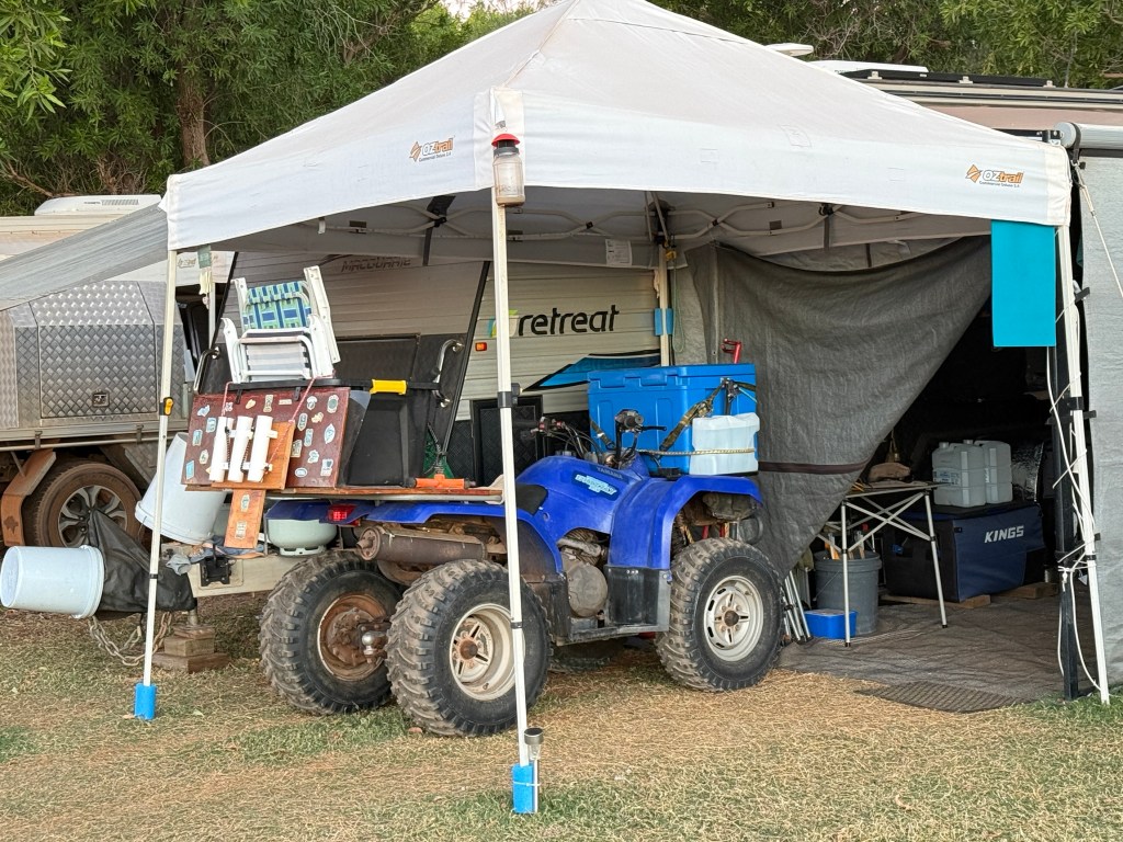 After we had set up camp we did indeed take some time out and sat down in the awning shade for the afternoon, plotting the next days activities. Dinner also called and we tucked into a piece of beef from our time in Kununurra marinated in peppercorn sauce. Homealone knocked up some potato fritters to go with it, all very tasty.