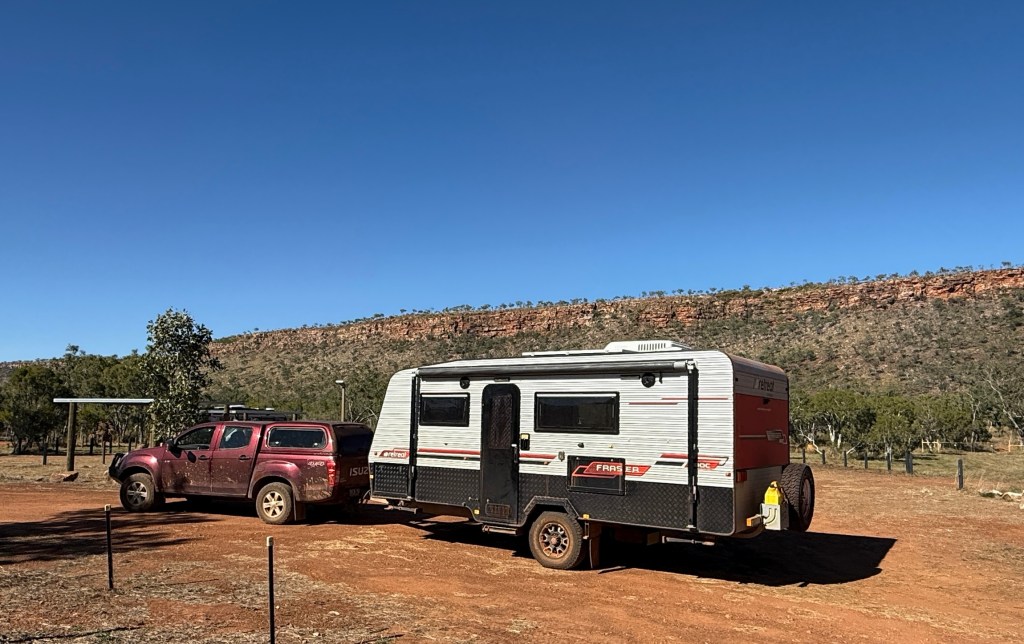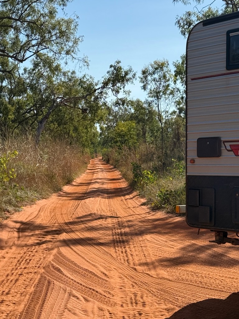 Journeying along the Gibb River Rd is an experience, particularly towing a van behind. We go along at a gentle 45 to 55km an hour, slowing down of course for creeks and other dicky road conditions. Allthego remembers he did blunder once though! It has now been fixed. Others seem to speed by leaving clouds of dust to peer through.