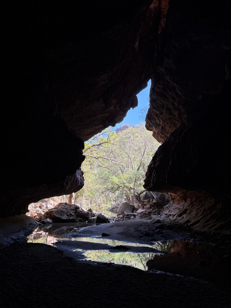 Very dark, people generally had hand torches and head lights. Interesting experience! Absorbed about two and half hours in going through twice, the second time with the phone for pics. We returned to camp for a very late lunch and an afternoon looking at the trees.