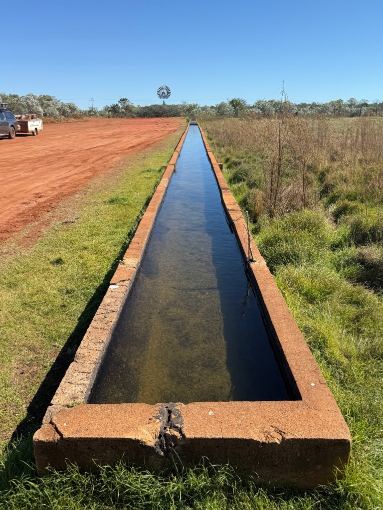 Near the ‘prison tree’ is another relic from the early 1900s, what is thought to be the longest cattle drinking trough in the Southern Hemisphere at 120 metres. Five hundred bullocks could breast this bar! Originally it was directly fed by a bore, a windmill now pumps water into it. No bullocks seen, I suppose they still come along at times; only tourists.