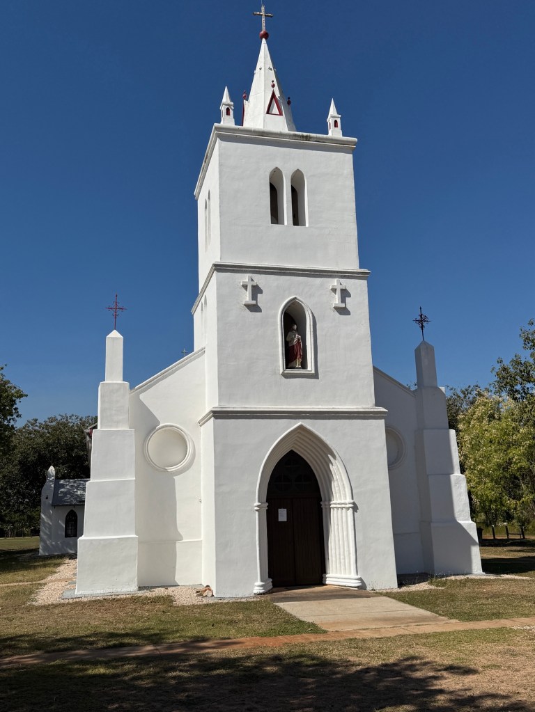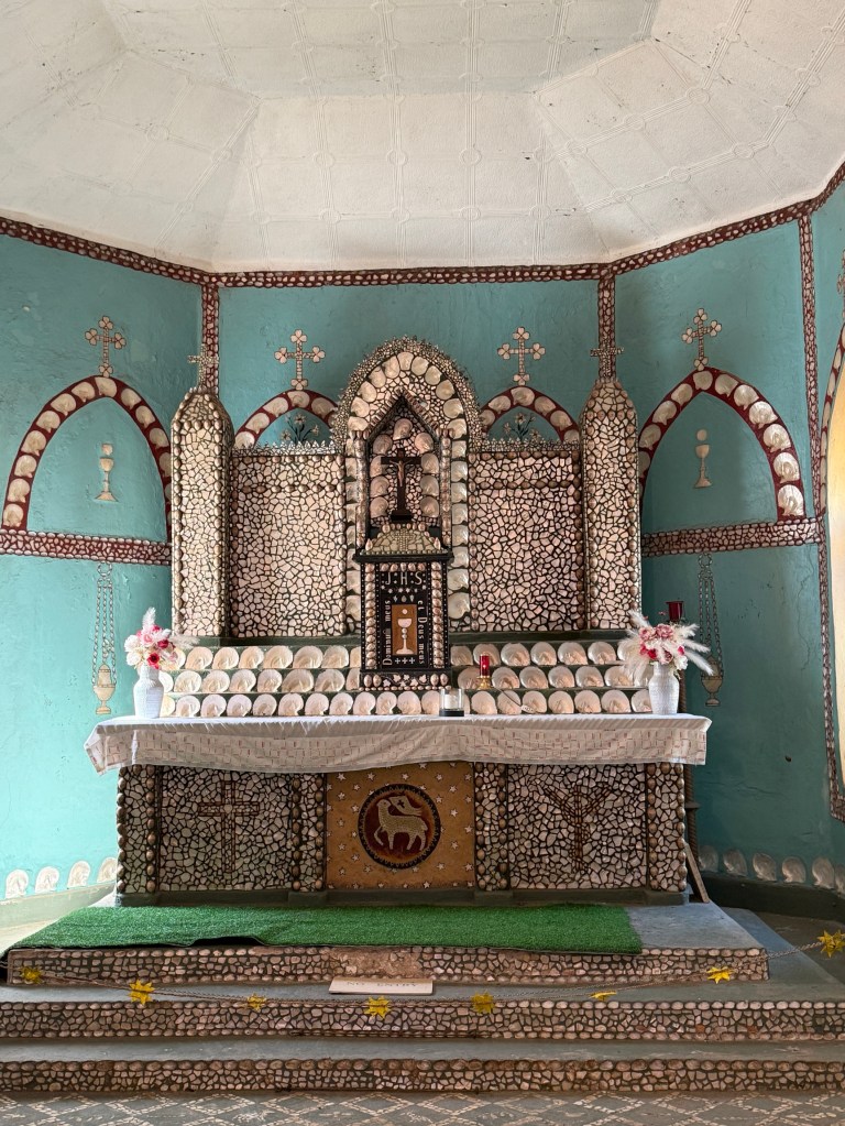 Beagle Bay, about 5km off the main road, is a popular stop with Nomads as you can top up with fuel and visit the Sacred Heart Church, the altar of which is made from Mother of Pearl shells. It was originally built by Pallotine monks and local aborigines in 1918, the bell tower was completed in 1920.