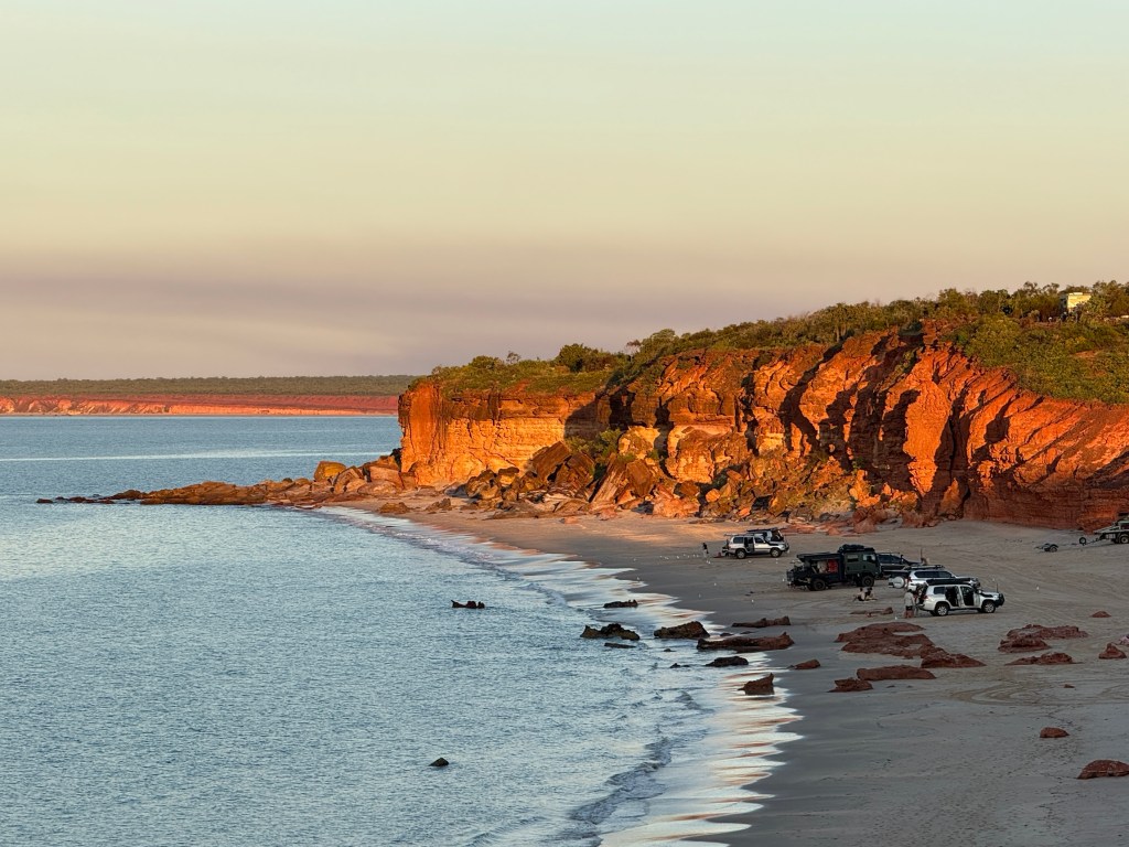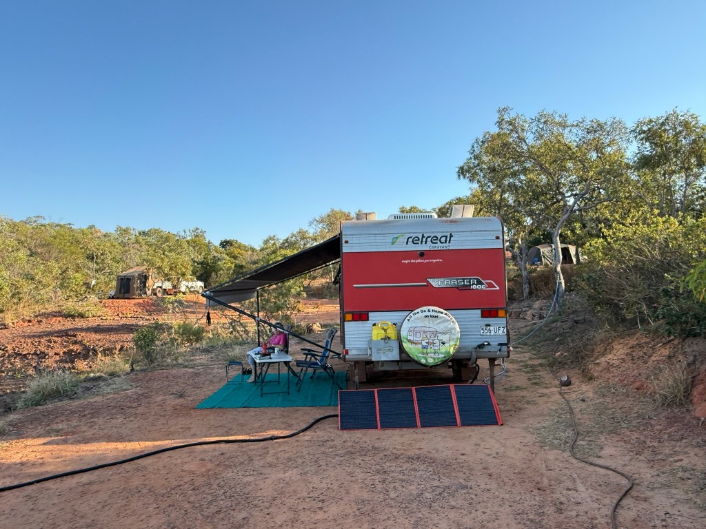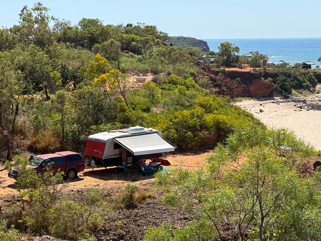Our site faces east and the sun rises it seems from the waters of King Sound, across the tip of the Peninsular. Pretty good spot for feet up and a swim after the more hectic Gibb!