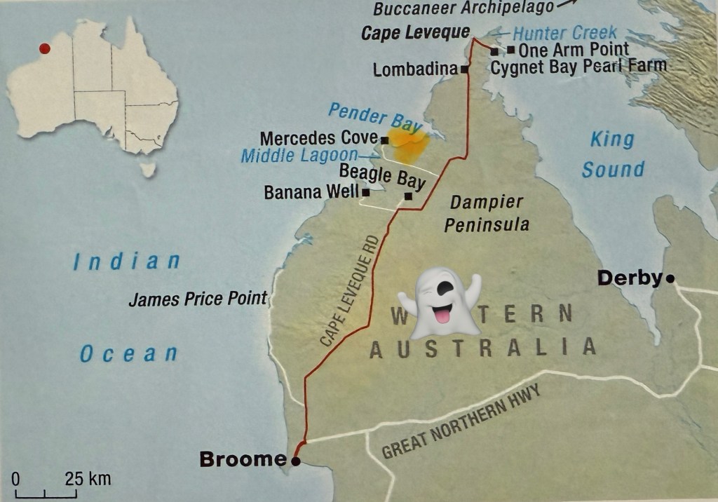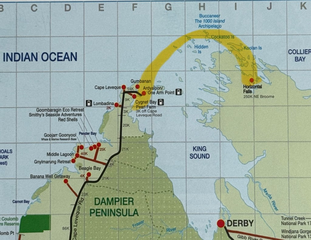 We returned by a slightly shorter flight path to Cygnet Bay. Back at the van by 8.30am in good time to finish packing up and head back down the Cape Leveque Rd to the Broome Gateway CP.