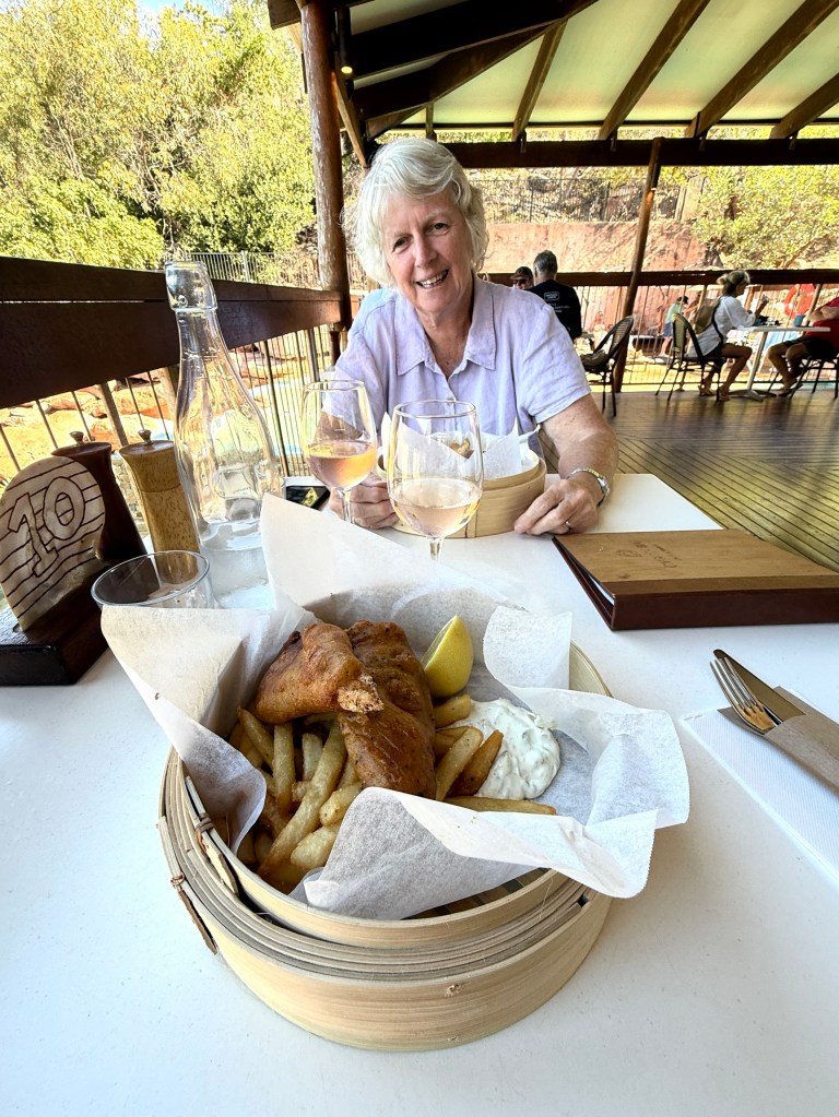 We gave the fish n chips a go at the restaurant. Very generous serve of barramundi pieces and the usual pile of chips buried underneath with the tasty tartar sauce. I think the best F&C so far! The rose helped.