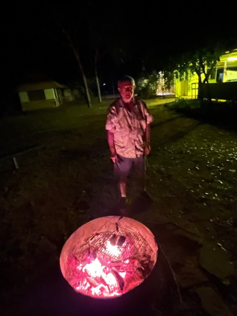 Birdwood Downs is about 10 km from the end of the Gibb. It is a sister station of Mt Elizabeth Station (one of our earlier stops), owned by the Burton family. The camp is run in a similar way, no power or water to sites but good facilities compensate. Homealone was in luck because we arrived on a Saturday and Saturday night is burger night around the campfire. All up sixty seven burgers were consumed by travellers. Dinner all done!