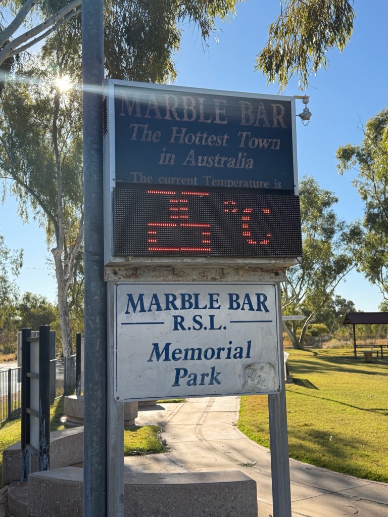 Marble Bar’s main claim to fame is that it is recorded in the Guinness Book of Records as ‘the hottest town in Australia’. For the 161 days leading up to 20 April 1924 the temperature did not drop below 37.8’C. That is a hundred year old record. The town continues to get regular mentions in TV weather reports for extreme temperatures.