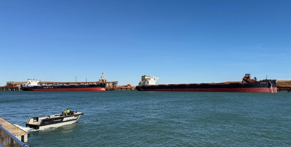 ‘Hedland’ is spelt without an ‘a’ before the ‘d’. Why is this? It’s because the place is named after Capt Peter Hedland who explored the area in 1863. BHP have big influence. It is their iron ore export port, Rio Tinto also use it for salt exports.