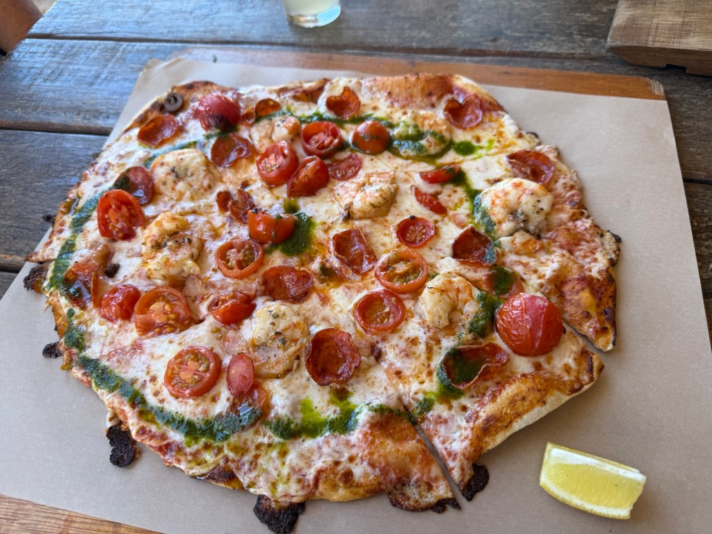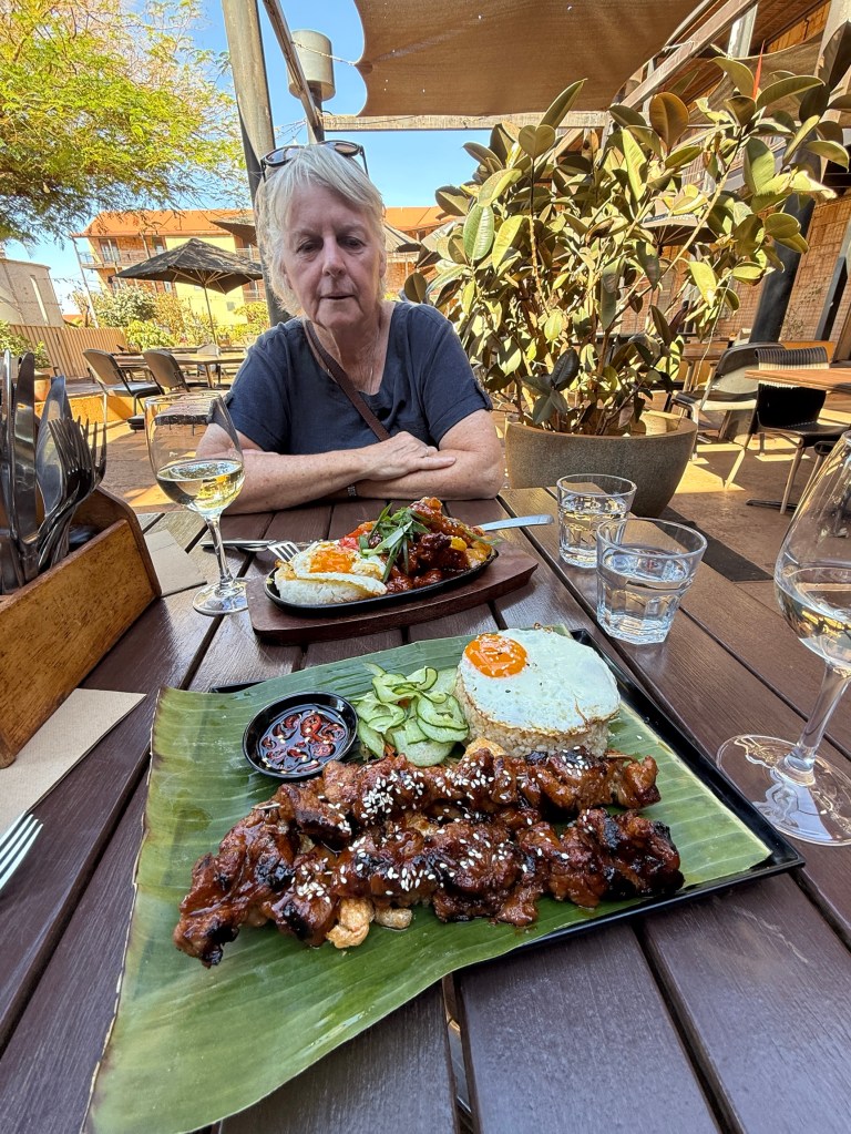 The town has two craft breweries and we tried one out for lunch. An Exmouth prawn pizza was washed down with a selection of their product including a tasty ginger beer, there is a 4 pack in the van cellar to take back to Brisbane.