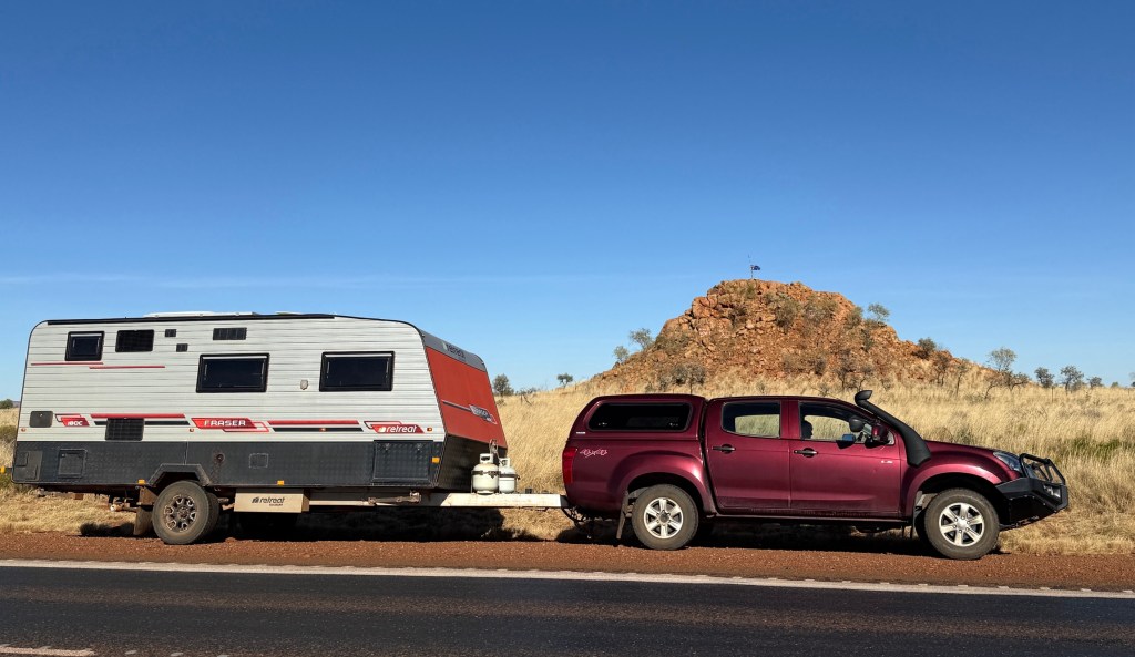 The next morning the route took us along a series of mainly good gravel roads for 330km to Mt Augustus. Plenty of red dust to coat the van and contents. We arrived about 4.30pm all ok but with only about 5 litres of fuel left, plus our 20 litre safety gerry can!