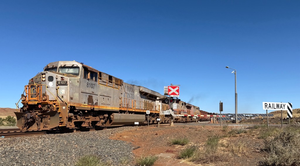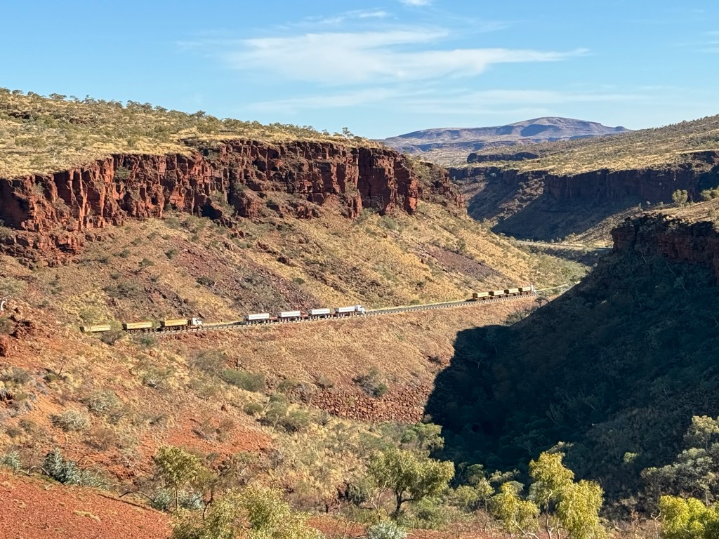 We have chosen to head for Karratha from Tom Price along the Rio Tinto private road beside the railway line. To do this you need a permit. Permits are not hard to get, you just have to sit through a 20 minute video on the dos and don’ts at the Visitor’s Centre. The video is a little dated we are told but the sentiments hold! It was one of those videos that sort of make it all sound a bit hard, risky etc.