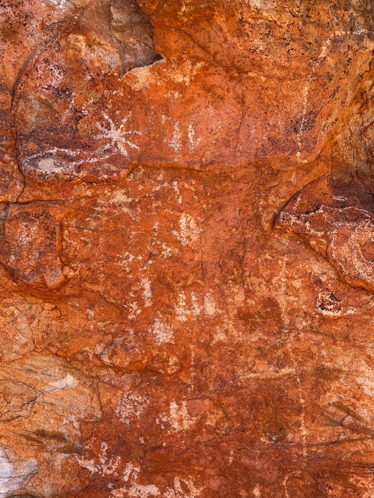 We had a wander around the site that is able to be accessed in the Murujuga NP. Some images are pretty clear, others you need the signage to assist identification and in other cases perhaps a good imagination to help! While we were here it seems the NP was made a World Heritage Site. It is interesting to ponder the human activity in this area over the last 40,000 years. Will the gas plant, the iron ore and salt ports, as well as a new fertiliser plant destroy it all? The industrialists say no. I suppose only time will tell.