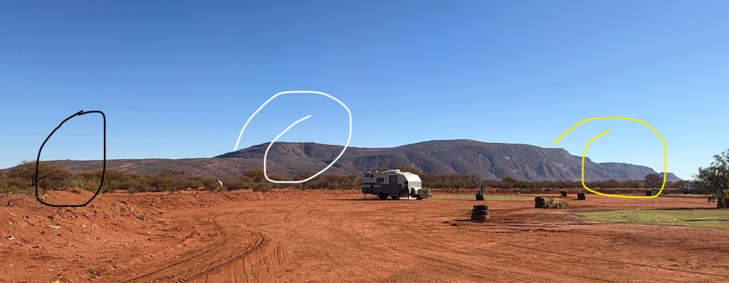 Here we are at Tom Price. The van park is a few kilometres out of town in the shadow of Mt Nameless.