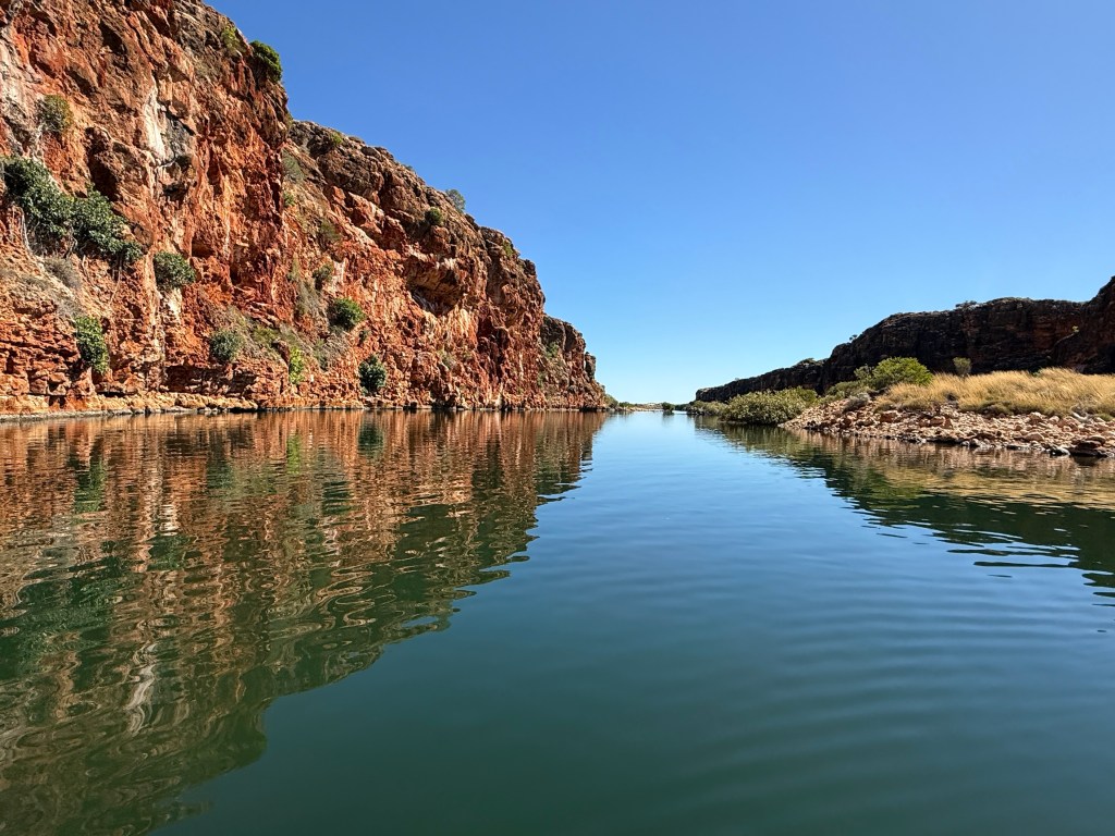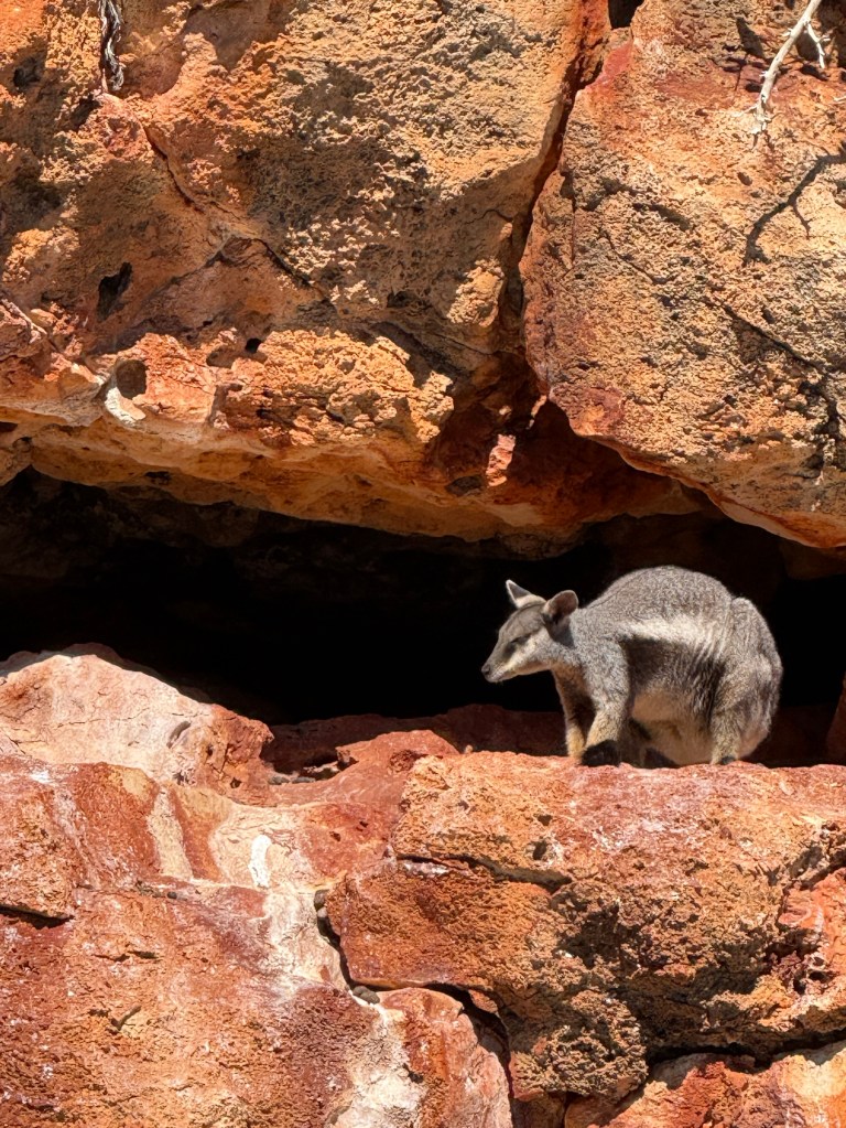It’s a mini gorge with colourful cliffs and a large population of rock wallabies that somehow cling to the vertical rock faces while moving around into caves and crevices. Quite a few resident fish and birdlife as well. An enjoyable jaunt.