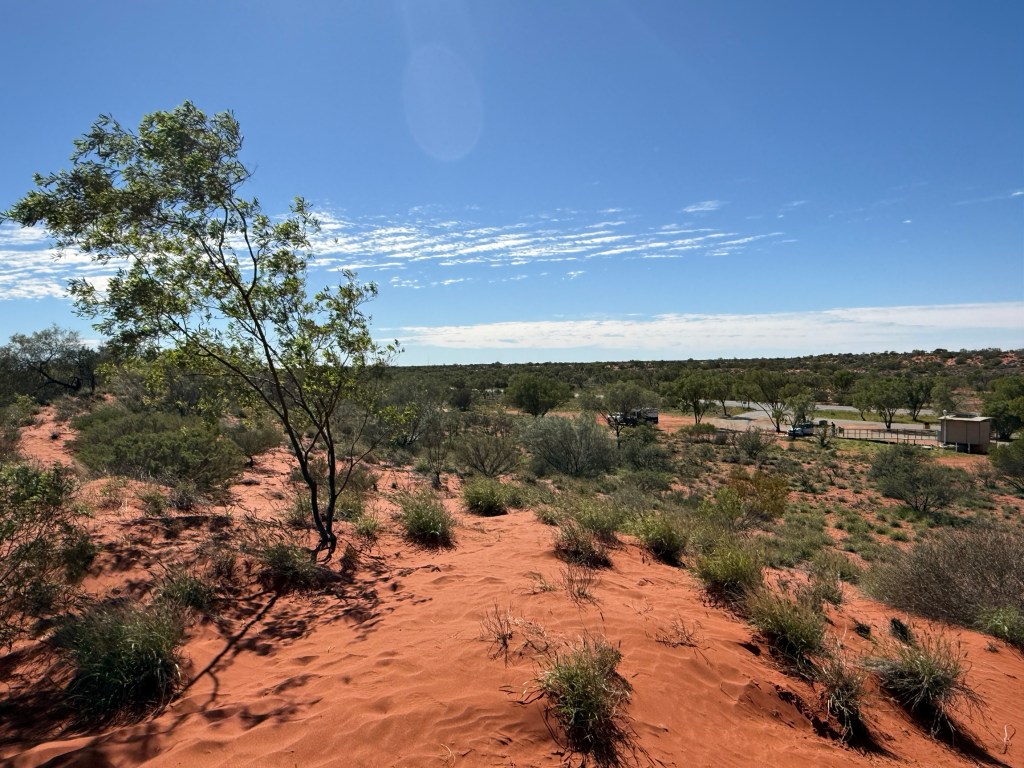 The scenery continued to be the gibber like plains with hardy shrubs. Trees lined the currently dry water courses. This country used to be sheep stations before WWII. Pastoralists had pushed too far north and in so doing ended up extensively over grazing the land, basically destroying it. After the war sheep eventually gave way to the more land friendly cattle industry which continues to this day as the pastures are slowly rejuvenated by the land owners.