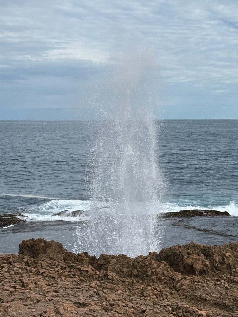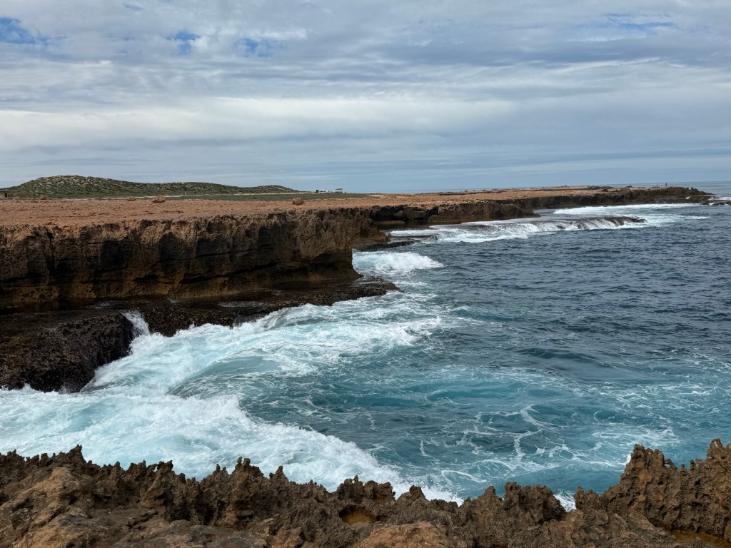 About 50km north of Carnarvon is Quobba Point. Famous for its rugged coastline and blowholes. We made a morning visit to catch the wave action.