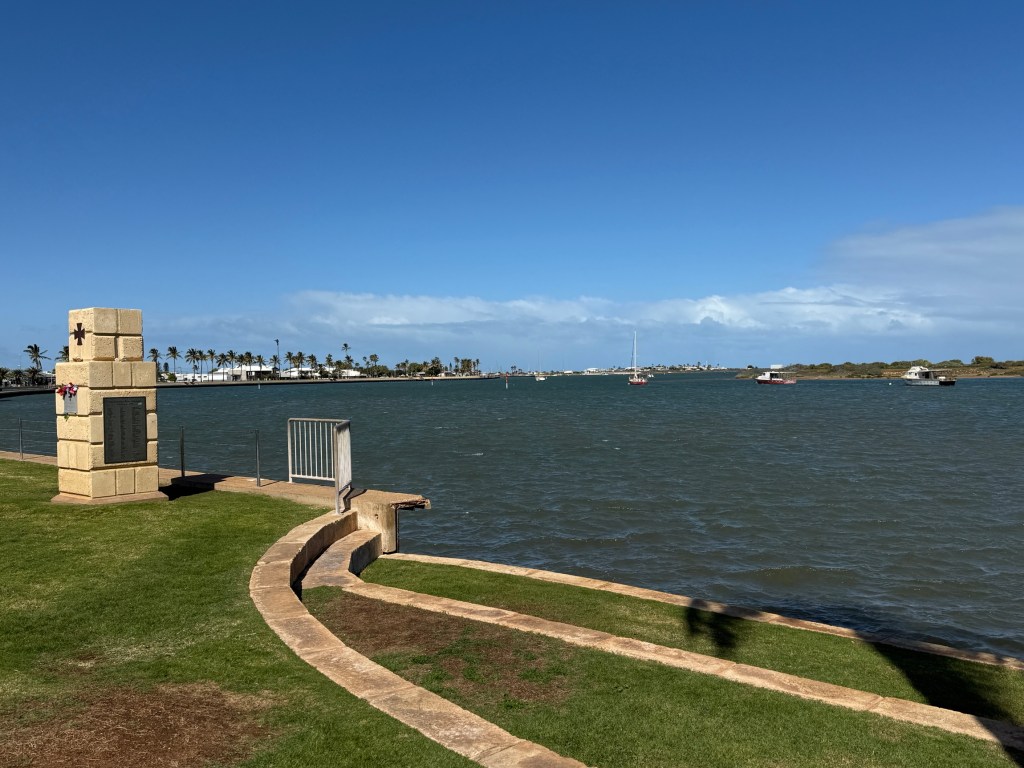 It was a little breezy and chilly and there were not many people around. There are monuments to HMAS Sydney II and HSK Kormoran along the foreshore, the Australian and German ships that fought a sea battle off the coast here in WWII. All of the Sydney’s crew perished and many of the German ship’s crew managed to get ashore and ended up being detained in prisoner of war camps.