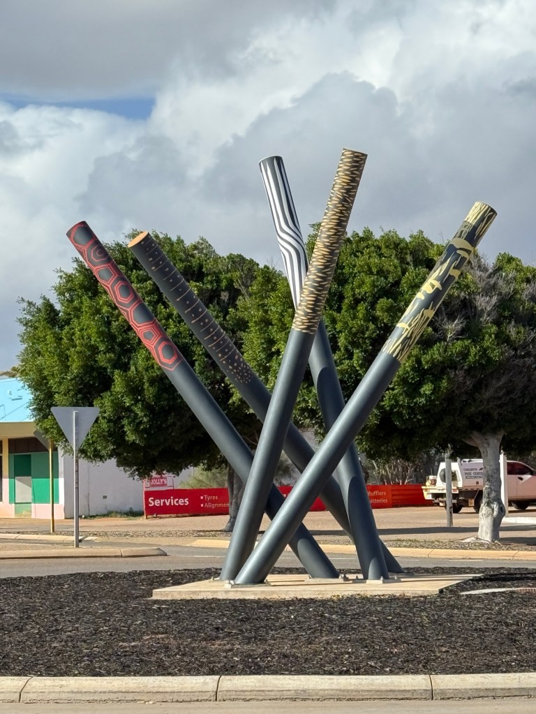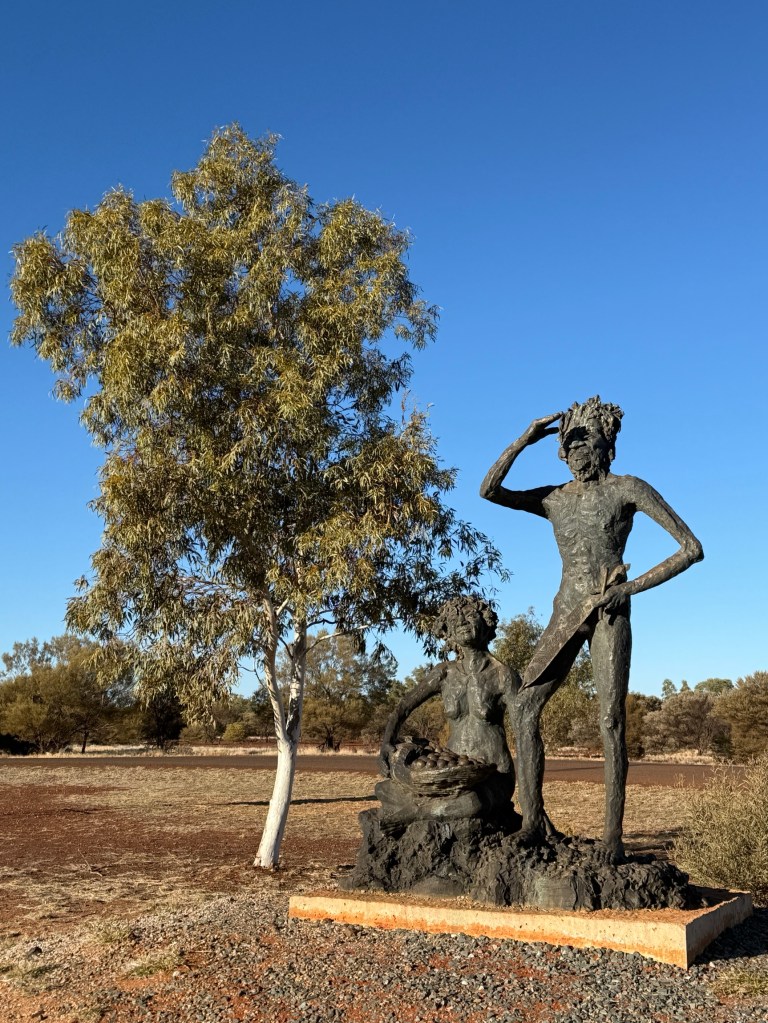 On the outskirts of Wiluna there are memorial statues of two quite famous desert aboriginals. Warri and Yatungka. The story of their solitary life together in the Gibson Desert, living in tribal exile from the mid 1930s to 1977, made world wide headlines. They came in out of the desert to live in Wiluna following much searching by their tribal folk.