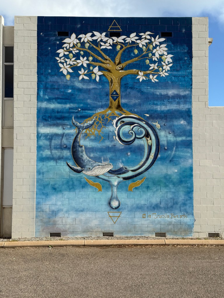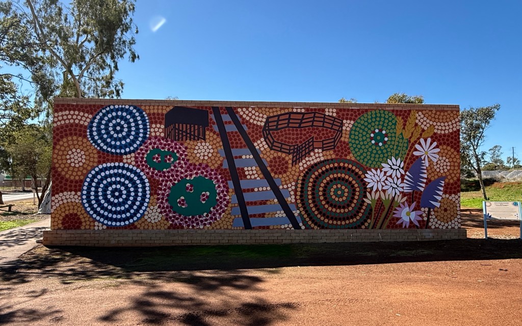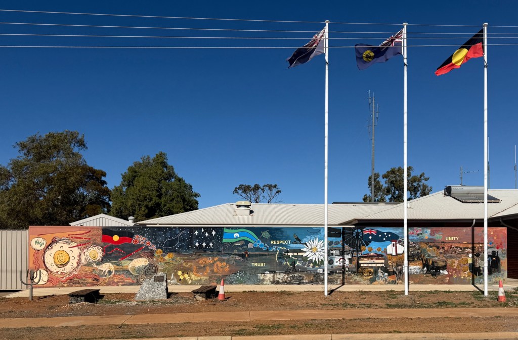 Not a lot seems to have changed in Mullewa since we were here nine years ago. There is a new ‘Reconciliation’ mural coming into the town. It reflects the ancient indigenous past through the period of European settlement to today’s efforts at reconciliation. Completed by members of the local indigenous group.