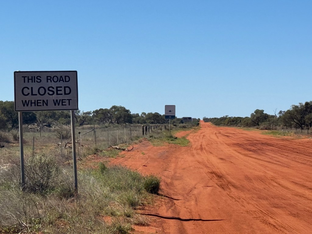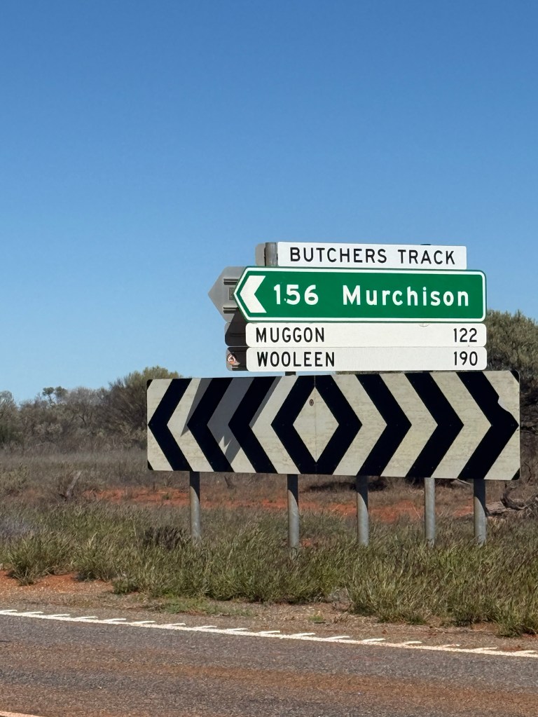 On the way we passed the turnoff along Butchers Track to Murchison. It brought back memories of our last WA trip when we travelled along this 156km of sandy outback road up, over and down sandhills on a well compacted gravel road. Looks a lot slipperier now after recent rain.