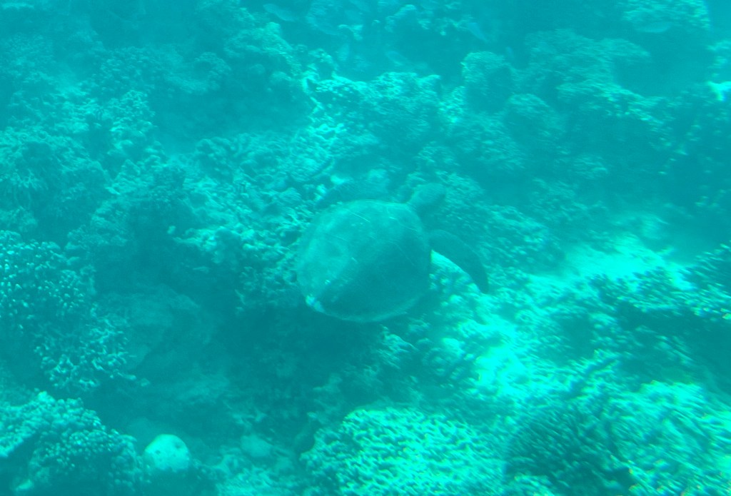 So we settled for something more sedate, a semi submersible boat that we sat in below the waterline and observed the reef and life below the surface. Numerous coloured fish of various sizes and several turtles among the coral structures swam past during the afternoon.