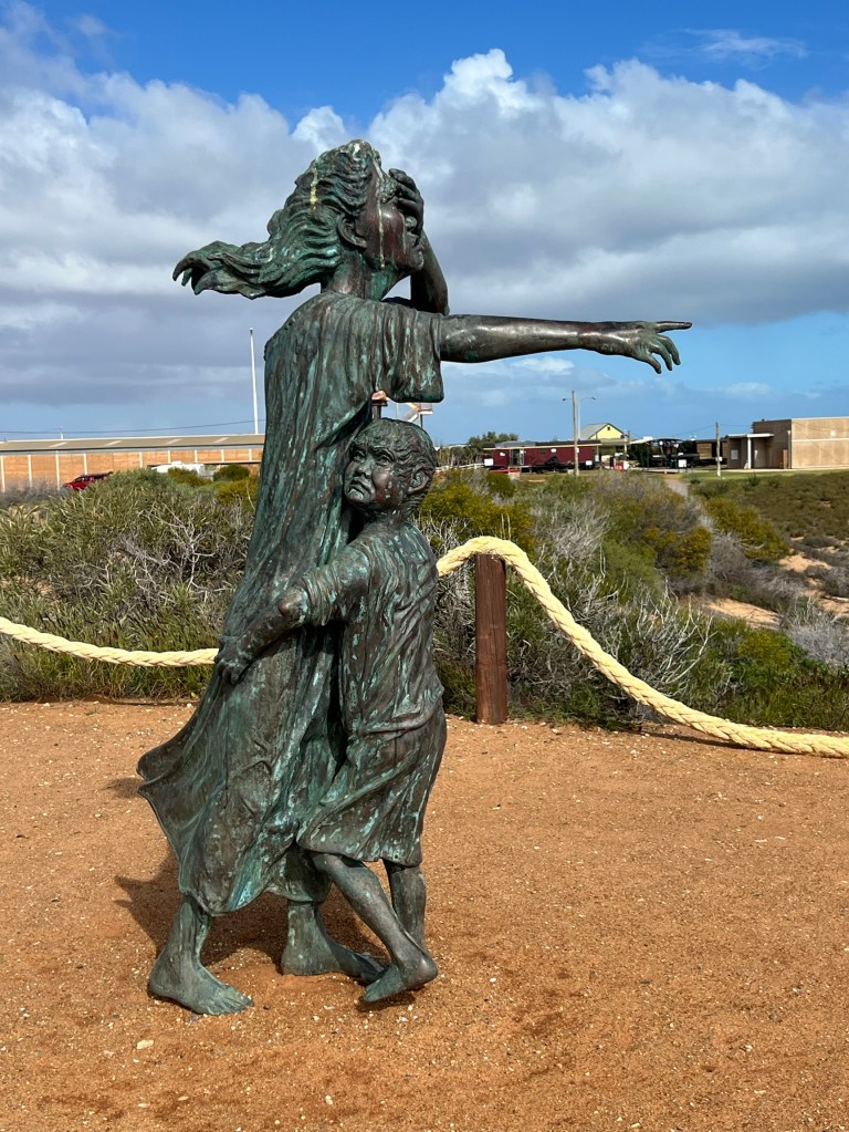 The area was also the spot where for about 12 years up to 1918 indigenous people from all around WA, suffering from diseases like leprosy, were transported to remote islands off Shark Bay. Many had never seen the sea before and died en route or on the islands.There is a bronze statue reflecting the separation from family and the pain of those being transported.