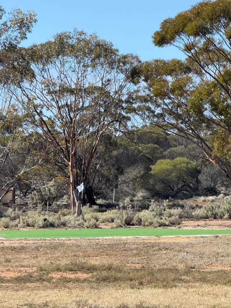The course stretches across the Nullarbor from Kalgoorlie to Ceduna. Eighteen holes of challenging tees, fairways and greens. They are located at various courses and roadhouses. This one is just out from Norseman and called ‘Golden Eagle’ after a 35kg gold nugget that was found nearby in 1931.