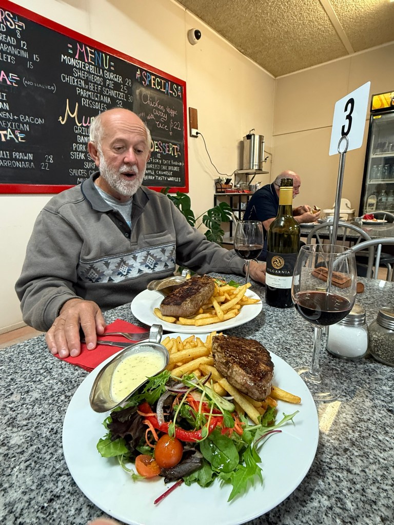 Mundrabilla saw another milestone reached with Allthego notching up 73 years on the road. We celebrated at the RH with a nice scotch filet and a Denmark WA red. All looking foreword to squeezing a few more road trips out of the truck and van.