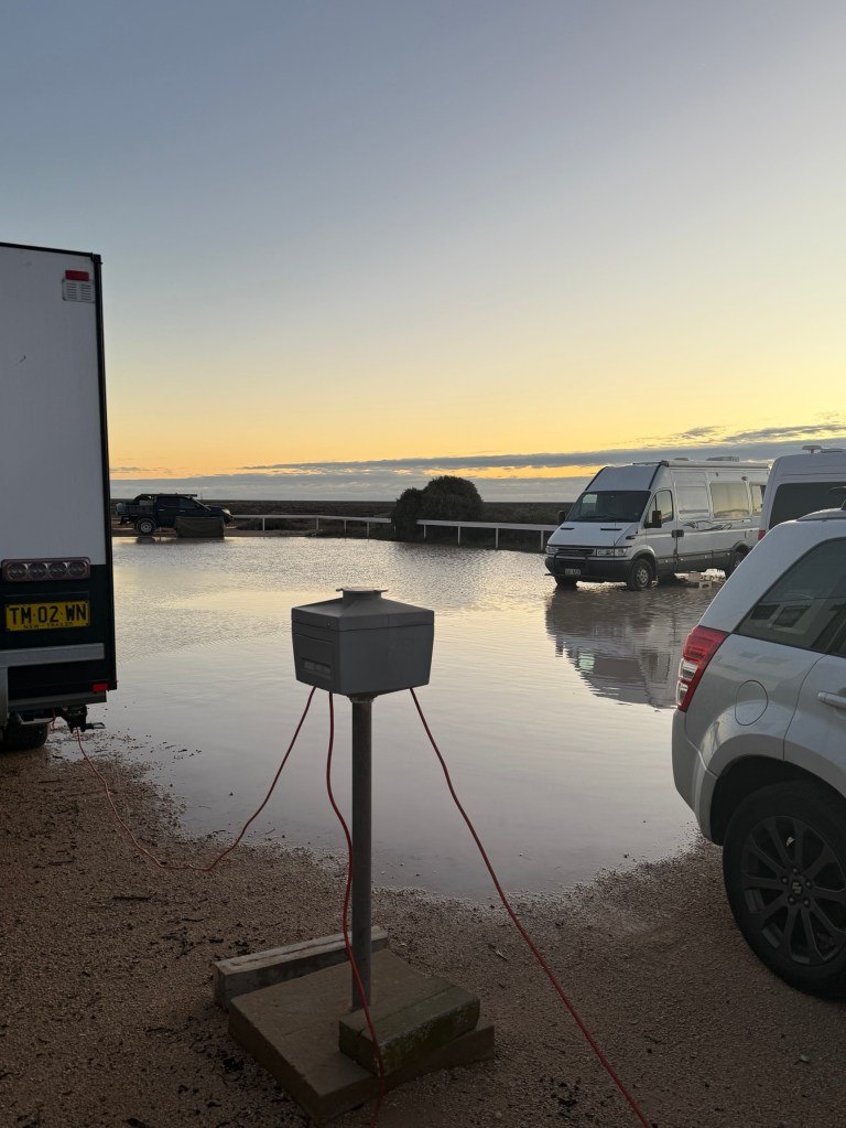 We woke up to a partly flooded van parking area, our feet were not in the water unlike a few other nomads. Those shepherds were right about the red skies yesterday morning.