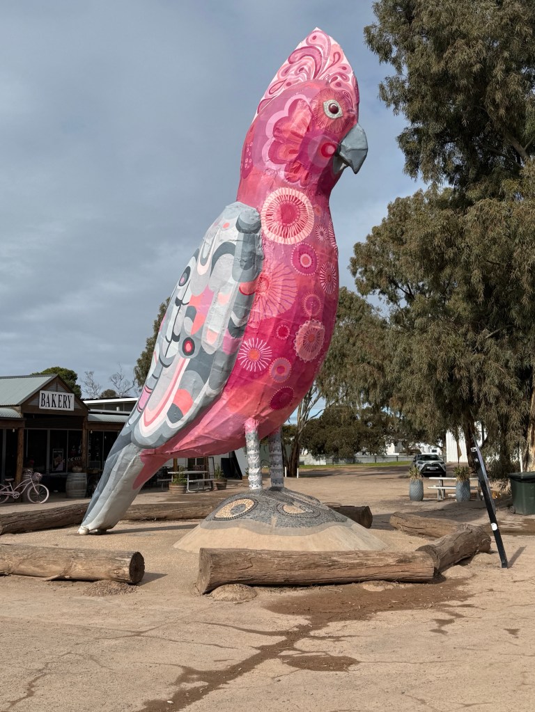 On the way to Port Augusta we passed through Kimba. This town claims to be half way across Australia and has a big galah out the front of a roadhouse. The galah has had a recent refresh and looks superb! There is nearby Silo art as well.