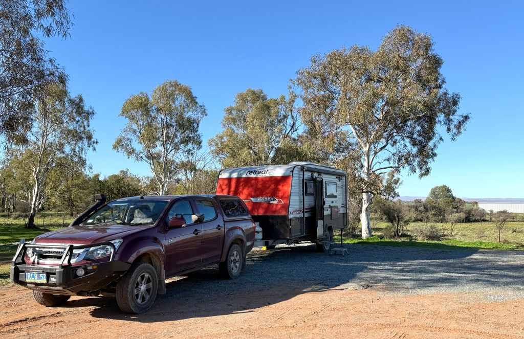 We stopped for the night at Gilgandra, having originally planned for a night at the free camp next to the Information Centre. This is an excellent spot. But it is cold and there is nothing like a bit of warmth on these late winter nights on the road. So we had a night in the caravan park with power to run the heater over night. Very toastee, particularly at 3 am in the morning.