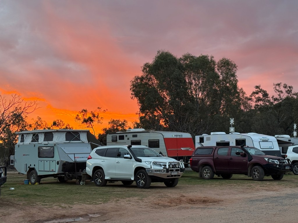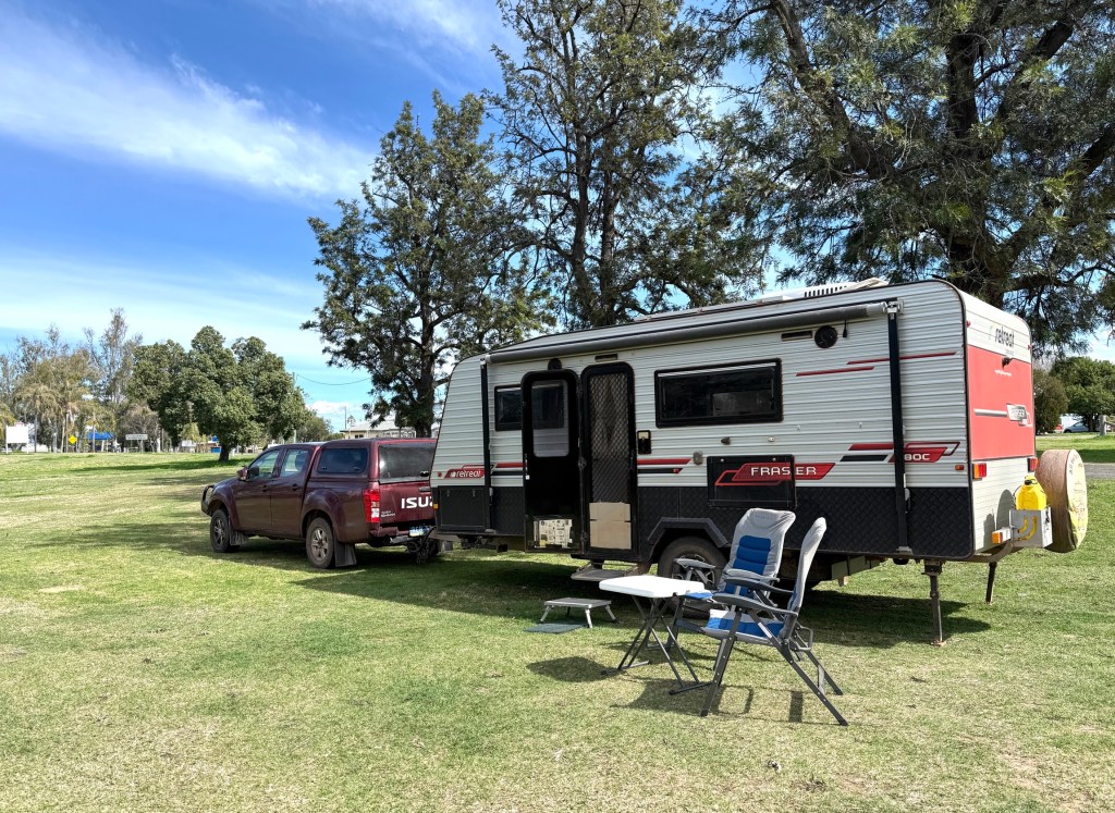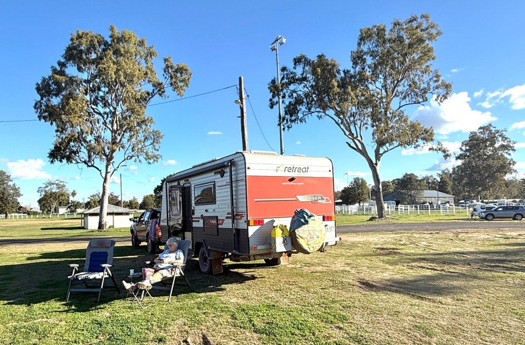 The Moree Showgrounds were too good to pass up for the night, big open sites. We have enjoyed the last couple of late afternoons being able to sit out in the sun. It is noticeably warmer as we have moved north towards Brisbane, though the heater continues to be welcome at night. We survived the night in the Showgrounds and made an early getaway for Goondiwindi and then Inglewood.