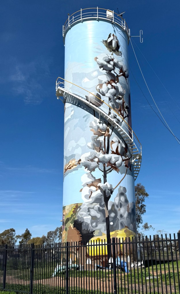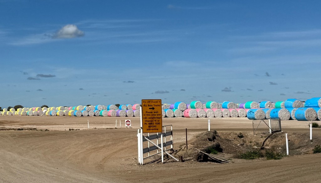 Cotton is big time in these parts and there must have been a recent harvesting of the winter crop. The paddocks are awash with bales of the stuff and the Warren Gin looks to be at full capacity.