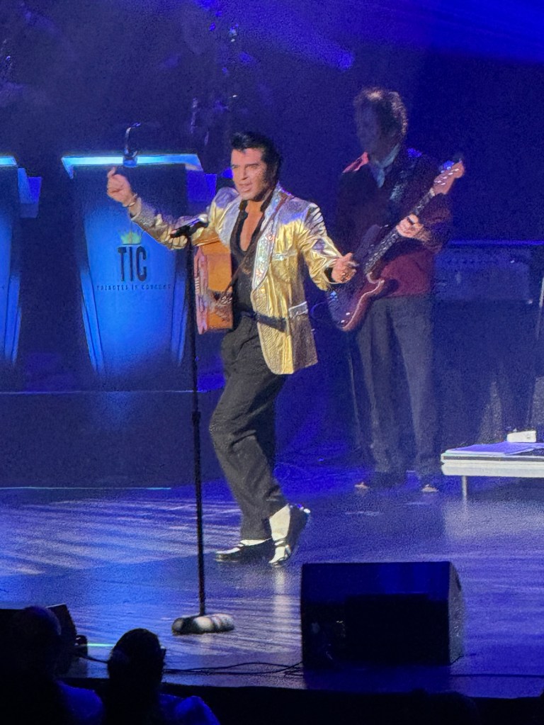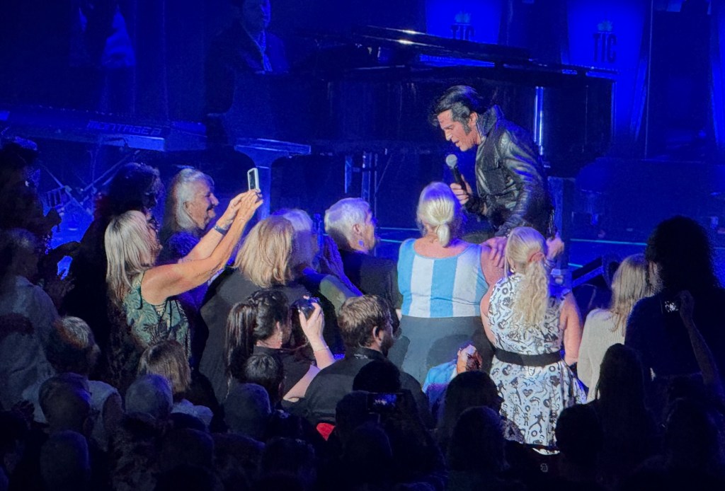 The only thing Dean did that was a bit off was kissing too many ‘girls’ in the front row and also giving away too many sweaty scarves. Overdid it a bit. But some great songs from the Elvis song book.