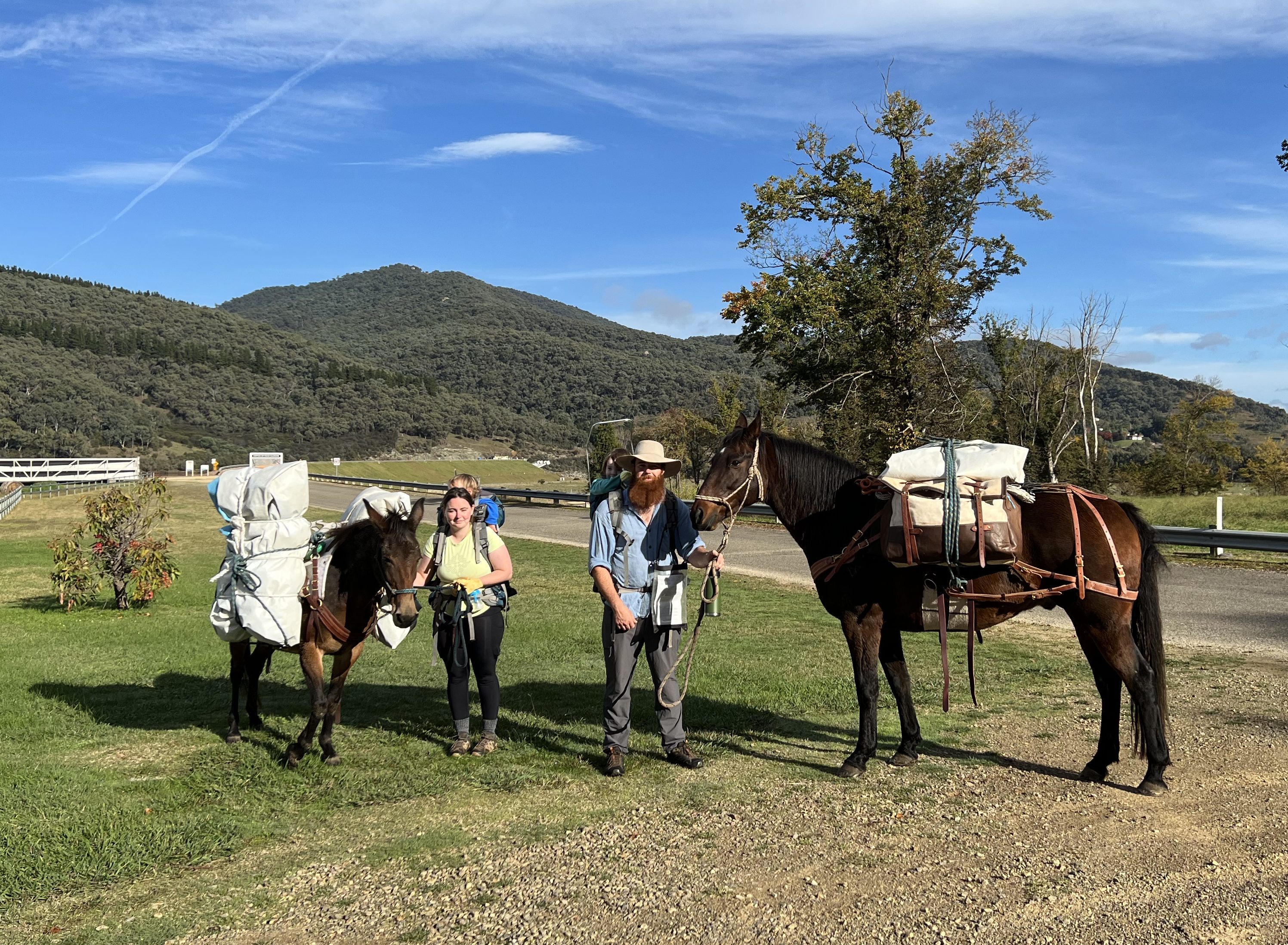 On the morning that we were to head off to Tom Groggin we had the pleasure to farewell a young couple heading off on an adventure of a life time with two horses and two kids. The mum and dad weren’t riding the horses but the kids were riding the mum and dad! The horses seemed to be carrying everything else that was needed for this excursion, hope they had enough nappies.