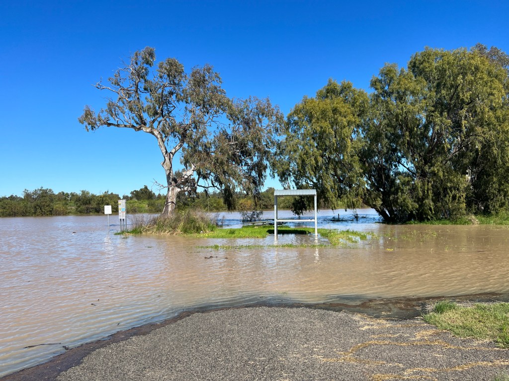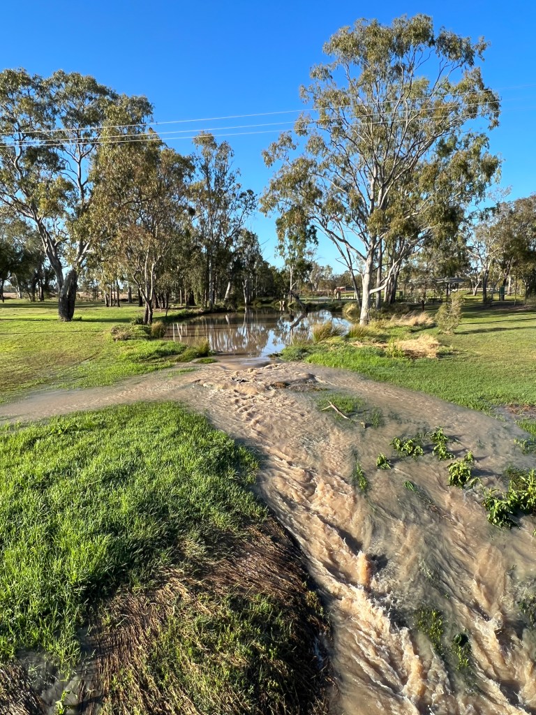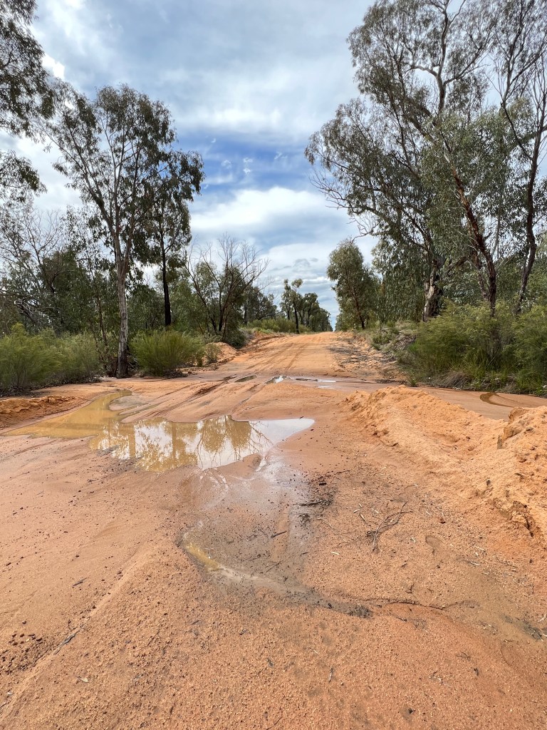 We are now at Coonamble after coming down from Lightning Ridge through Walgett. Between Walgett and Coonamble we encountered some water over the road in a few places, the deepest about half wheel height. Paddocks awash with water. Lake like in places.