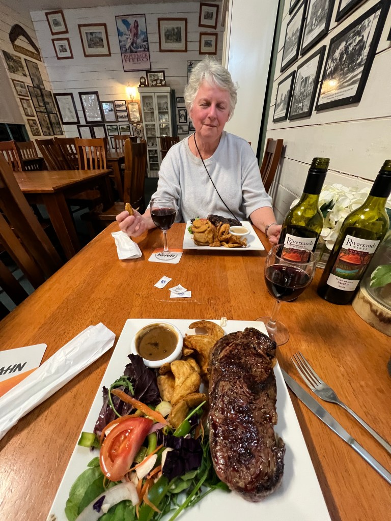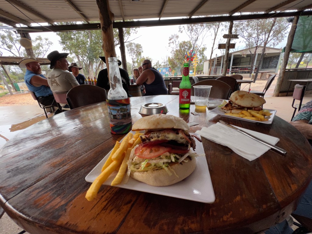 The pub is also known for its Road Train burger, 5.5 kg beef patty and all the trimmings plus chips. Only $100 but we did see it feed a table of 6 with left overs. Seemed like a meat loaf in a big bread roll. Another option is a 1.5 kg steak sandwich, more than enough for the two we saw dive into it.